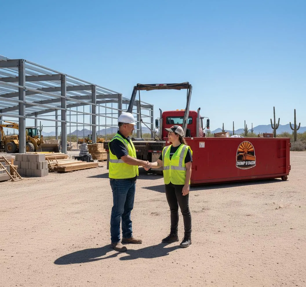 Dump & Dash was founded on a simple principle: make dumpster rental easy, reliable, and transparent. We saw a need in Maricopa and Pinal Counties for a service that truly puts the customer first, eliminating the frustrations of hidden fees, late deliveries, and unclear communication.